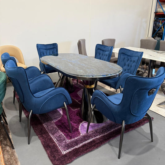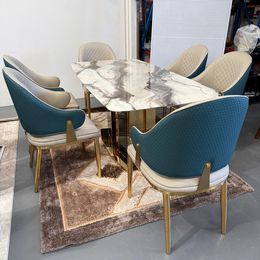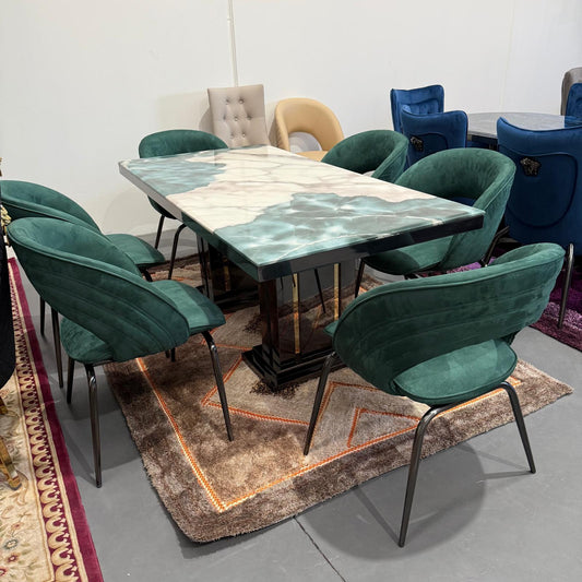 Ava Faux Marble Dining Table + 6 Chairs Set - Black/Green